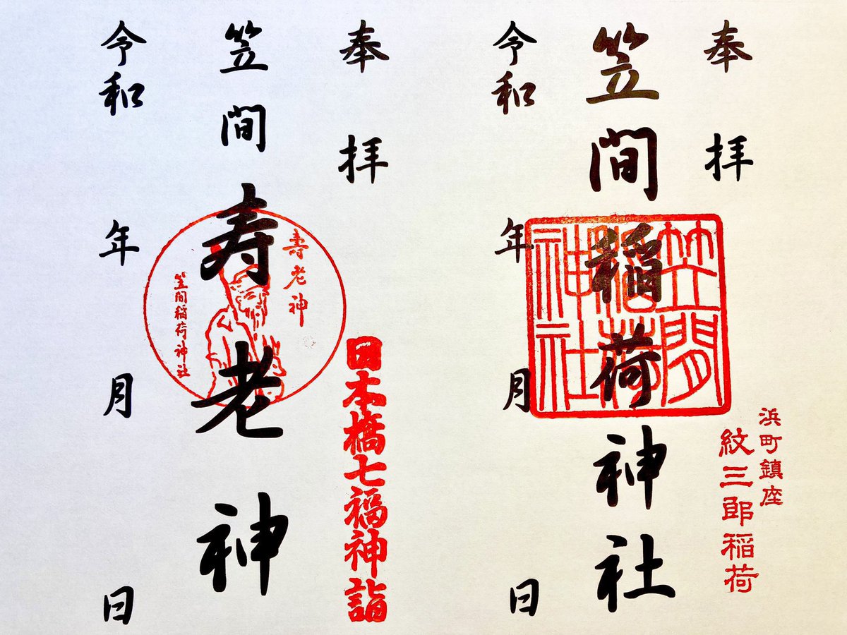 笠間稲荷神社東京別社の御朱印は、「笠間稲荷神社」と日本橋七福神の「寿老神」の2種類ございます。 ( 初穂料 : 各500円 ) #笠間稲荷 #神社 #日本橋 #人形町 #浜町 #七福神 #寿老 #健康 #長寿 #朱印
