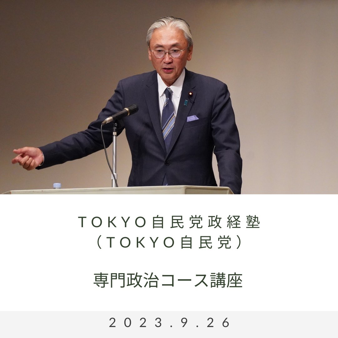 26日、TOKYO自民党政経塾は専門政治コース講座を開催し、「日本国憲法改正に向けて」をテーマに @Furuya_keiji 古屋圭司 党憲法改正実現本部長、時局講演として深谷隆司 塾長が講師を務めました。