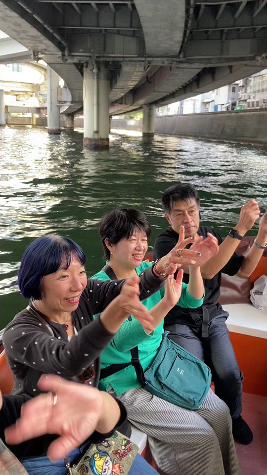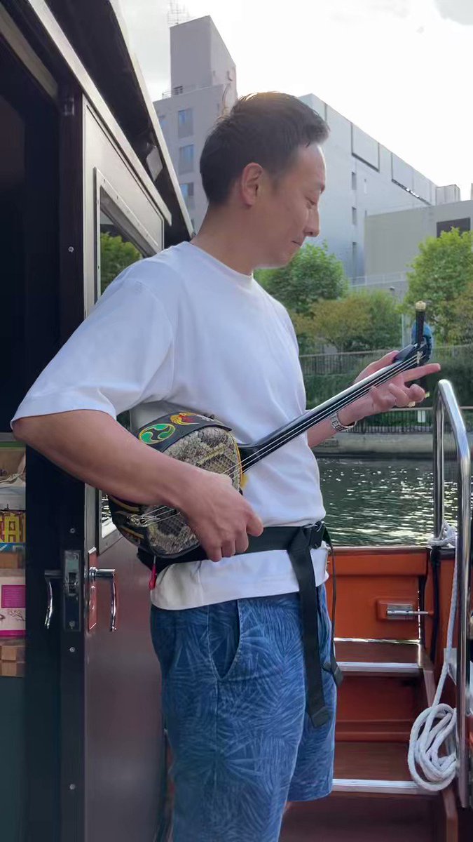 昨日10/21は秋を味わうひやおろし舟遊び。今田商店@imada1923 四代目今田健夫さんの解説で、夏越しの味わい深いひやおろしを利き酒。ほろ酔いとなったところで、教師免許を持つ健夫さん三線ライブ。手踊り楽しそうですね!締めは新川独特の、新川締めを教えてもらいました。