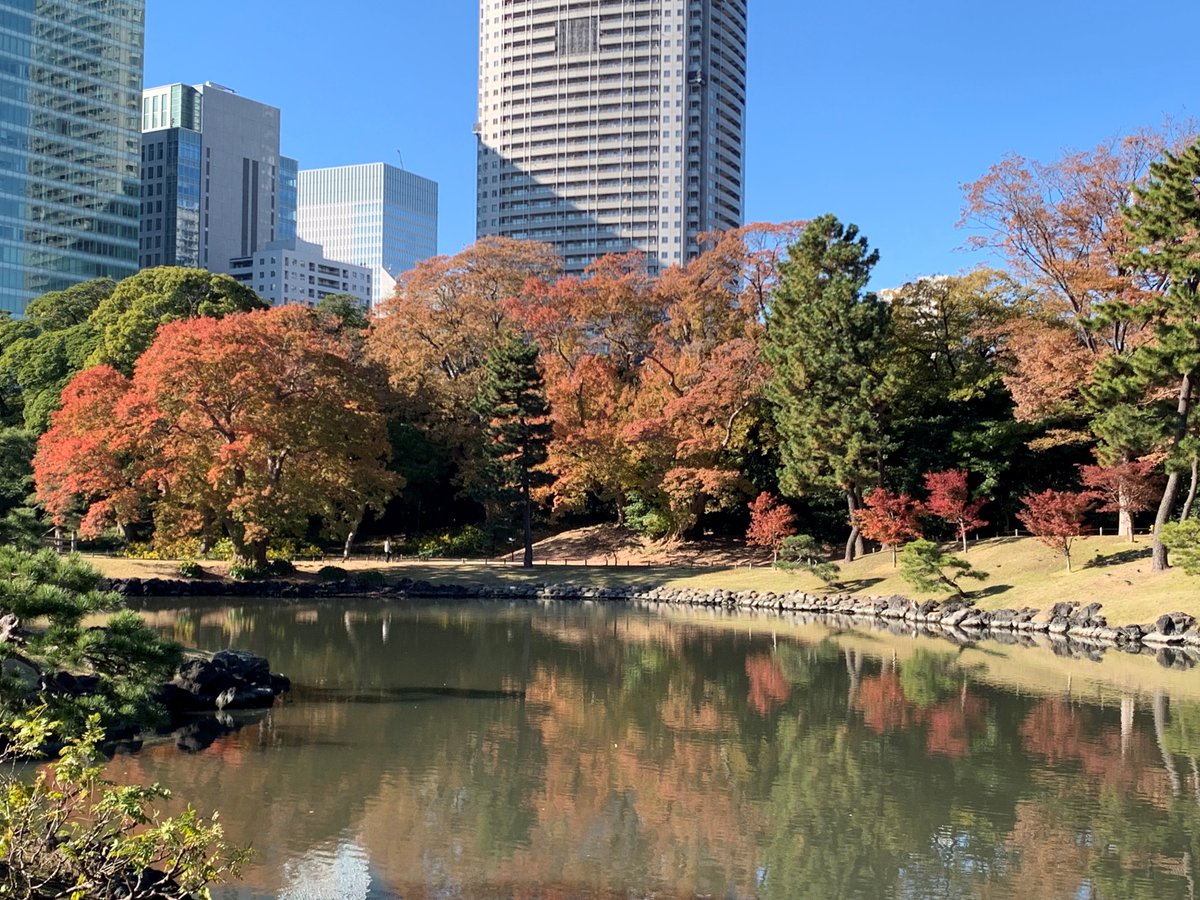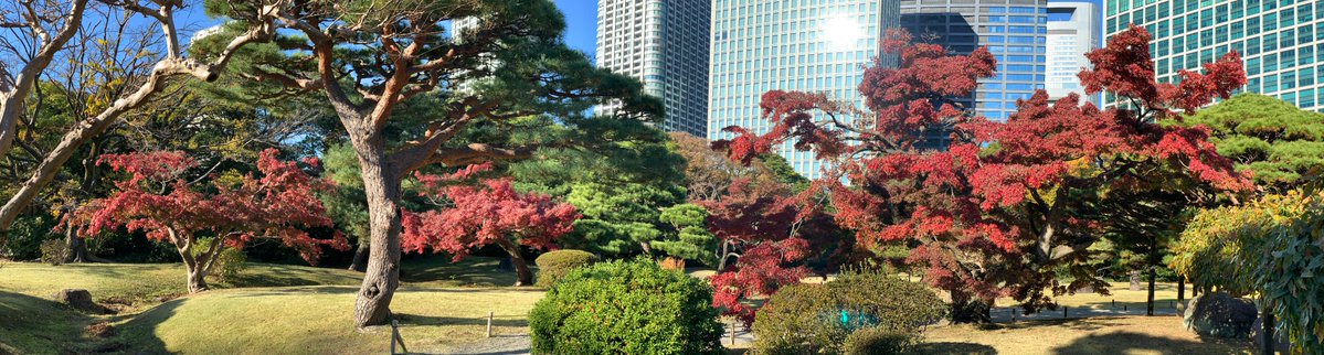 #HamarikyuGardens might not be noted for its #fallfoliage in #Japan but just look at the startlingly vibrant #fallcolors of the trident maples and the Japanese maples, now at their best, in the pictures we took this morning.