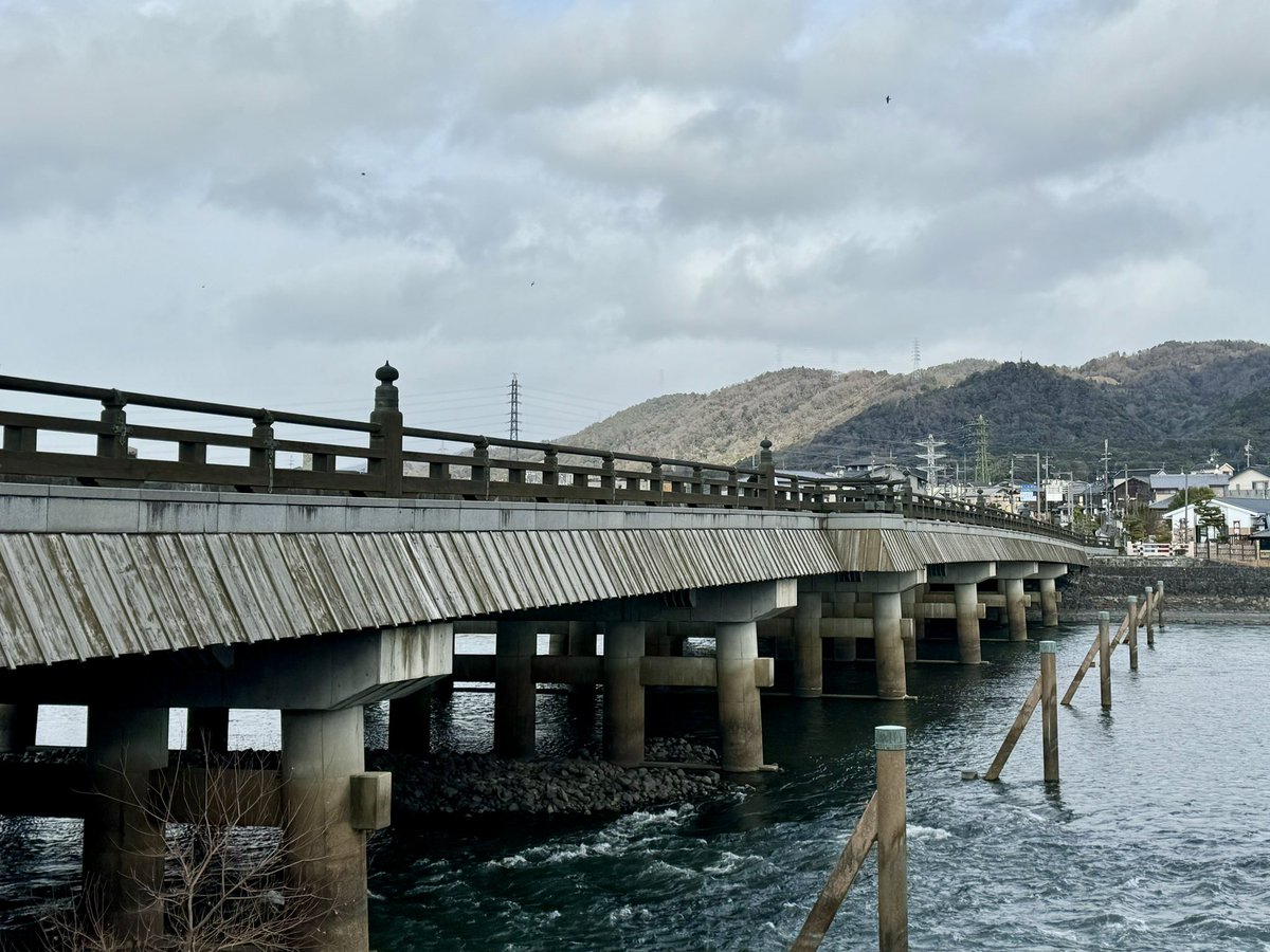 創架は646年!と伝えられてます。擬宝珠があるのが古橋の趣きを出してますね。橋脚防護杭も和風でオサレです。