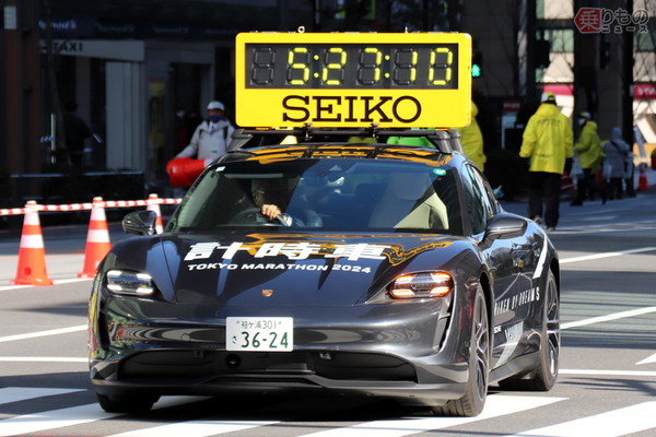 おい、ポルシェに “時計” 載ってるぞ「東京マラソン」で見られた異様 時代が確実に変わった! | 乗りものニュース