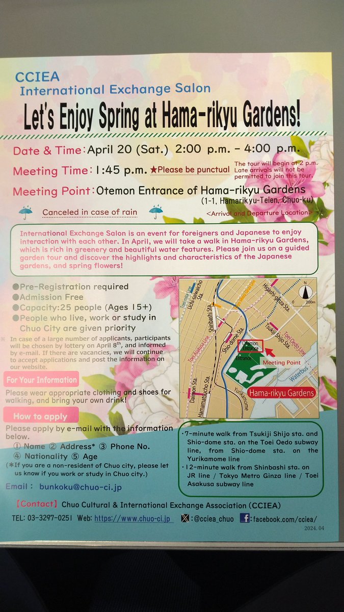 春の浜離宮で、日本人と外国の方とが楽しく交流するイベント。
