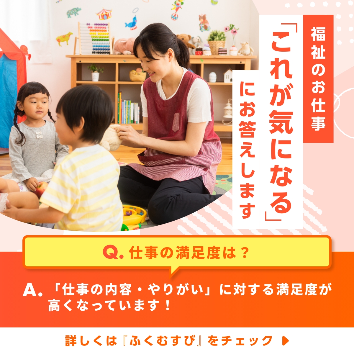 \\福祉のお仕事の「これが気になる」にお答えします// Q.仕事の満足度は? A.「仕事の内容・やりがい」に対する満足度が高くなっています! 福祉の仕事ならではのやりがいを感じながら働いてみませんか? 詳しくはこちらをチェック♪ https://fukushijinzai.metro.tokyo.lg.jp/fukushidehataraku/q&a/column_qa.html… #ふくむすび #福祉 #保育 #介護