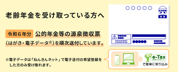 【#源泉徴収票 の送付】令和6年中に老齢年金や退職年金の支払いを受けた方に令和6年分の公的年金等の源泉徴収票を令和7年1月8日(水曜)~16日(木曜)にかけて順次送付します。e-Taxなどで利用できる電子データは、1月7日(火曜)~10日(金曜)にかけて電子送付します。 https://nenkin.go.jp/oshirase/taisetu/2024/202412/1227.html…