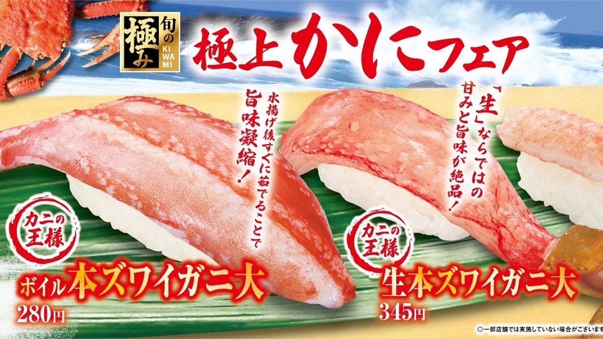 11/2(木)から、くら寿司で「極上かにフェア」開催。一足先にカニを堪能できる期間・数量限定のキャンペーン。お手頃な115円ネタも充実→event-checker.info/kurazushi/014..
