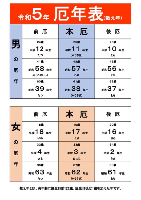 令和5年厄年表を掲出致しました。参拝の折にご覧下さい。#大祓#年末#本厄#前厄#後厄#節目#神社#縁起#正月013