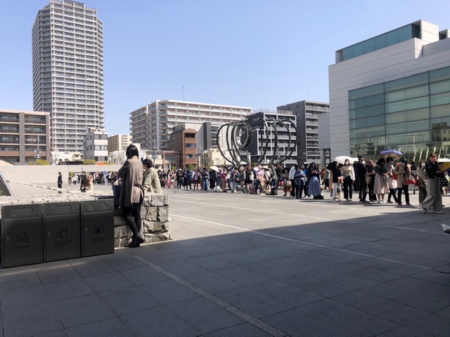 #東京都現代美術館で開催中の「クリスチャン・ディオール、夢のクチュリエ」展の当日券(4/13)は9:25現在、開館前から並んでいるお客様の購入列最後尾で15:00以降の入場回の販売を見込んでいます。#..