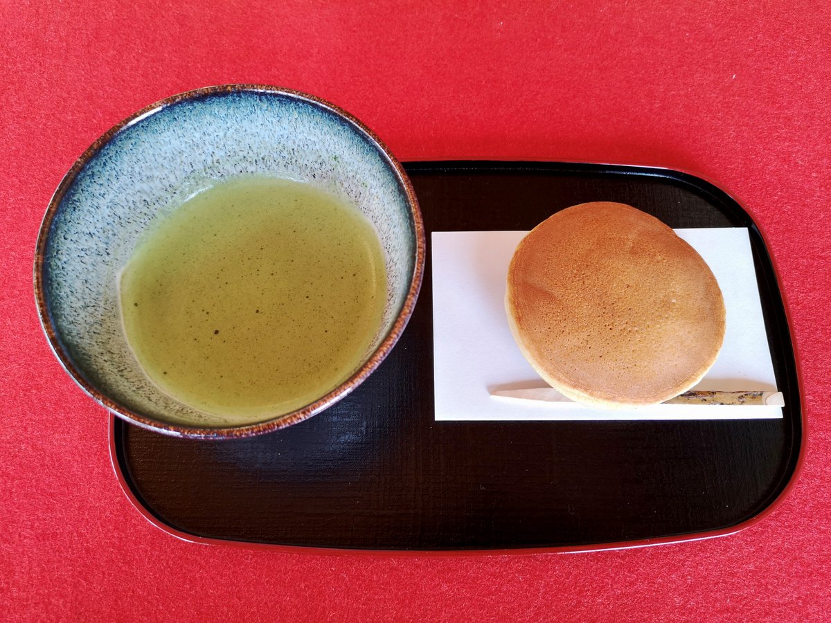 中島の御茶屋にて月替わりの#上生菓子に加え、#どら焼き*の#お抹茶セットもご用意しております。しっとりとした生地には、甘さ控えめのつぶし餡がたっぷり。店内からは#新緑を映す潮入の池がご覧いただけます。..
