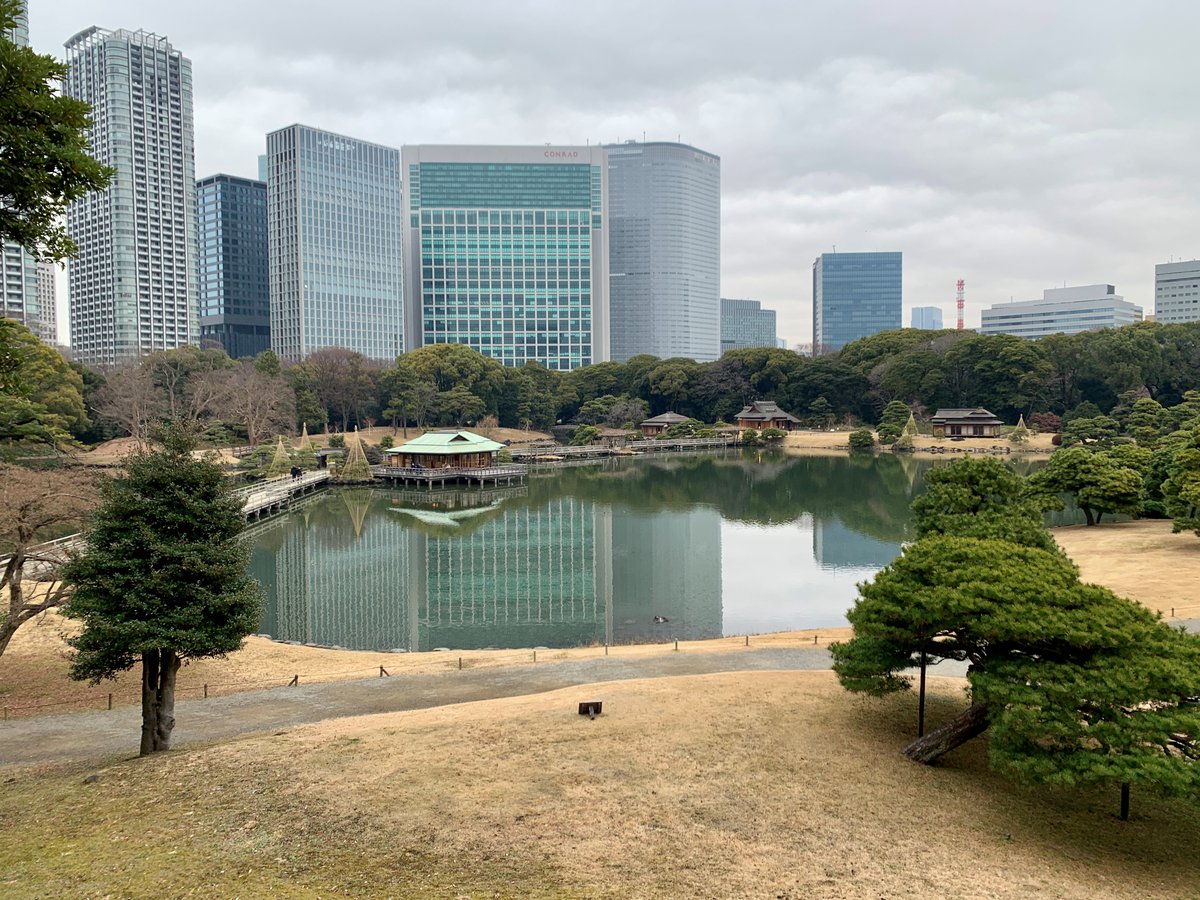 富士見山頂上からの真冬の浜離宮恩賜庭園です。紅葉が落ちてしまい少し寂しげな景色にはなりますが、園内ところどころ早咲きのウメ・スイセン・ロウバイやツバキが庭に彩りを添えてくれます。暖かい服装で散策をお楽..