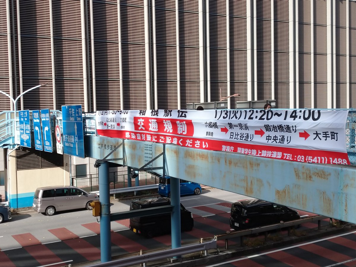 20日(火)。最低気温0.8℃と冷え込みました。今後は緩やかに下り傾向で明日は午後から傘マークあります。昭和通りには「箱根駅伝」交通規制の横断幕が登場。1/3まで丁度2週間という驚愕の事実。。001