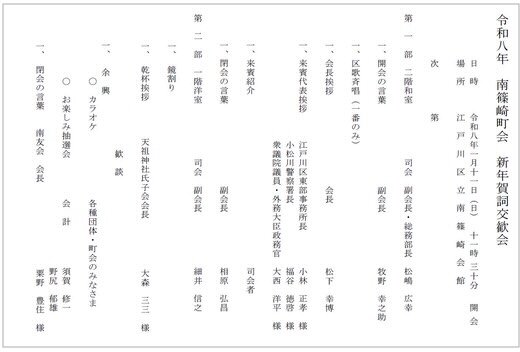令和8年1月11日(日)に南篠崎会館にて賀詞交歓会が行われました。