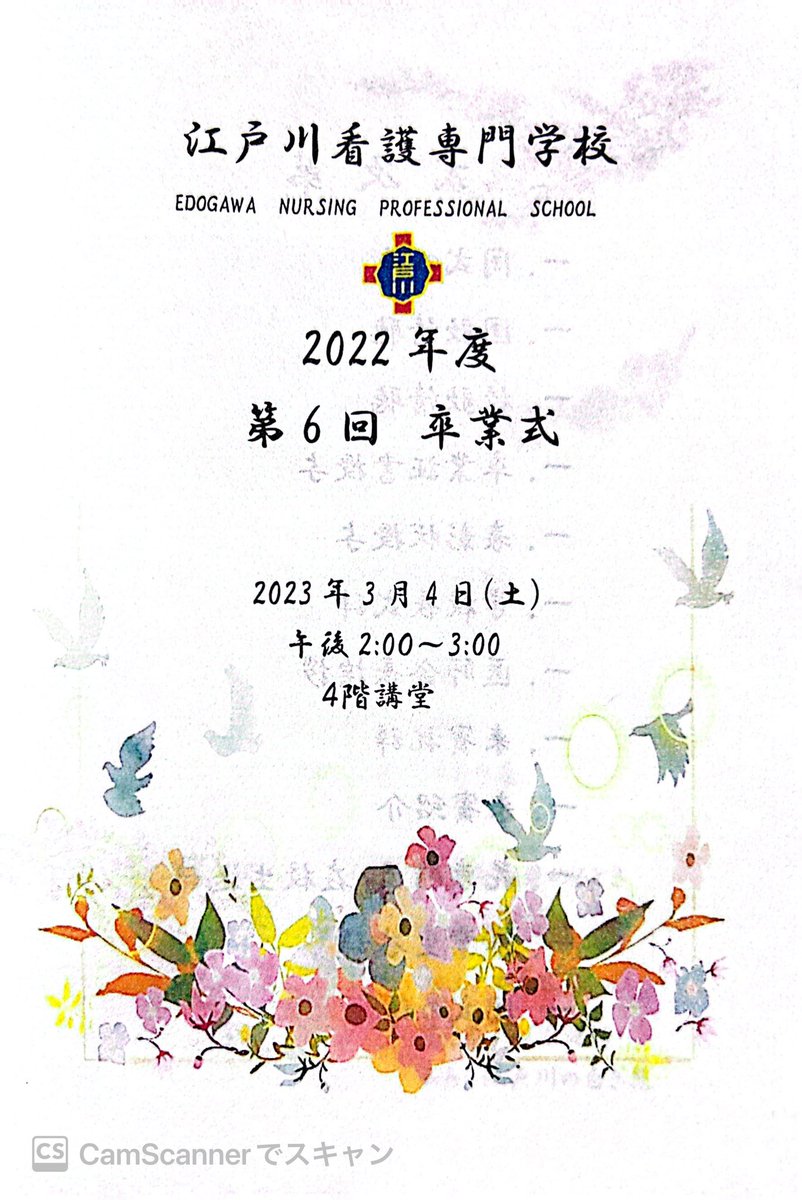 江戸川看護専門学校の第6回卒業式が挙行されお招きを頂き出席しました。3年前、最初の緊急事態宣言が発令された時期に入学され、大変なご苦労があったとの事。しかし、見事に乗り越えられてのご卒業、誠におめでとうございます。36名の新たな出発の日、自分の夢に向かって頑張って下さい❗️