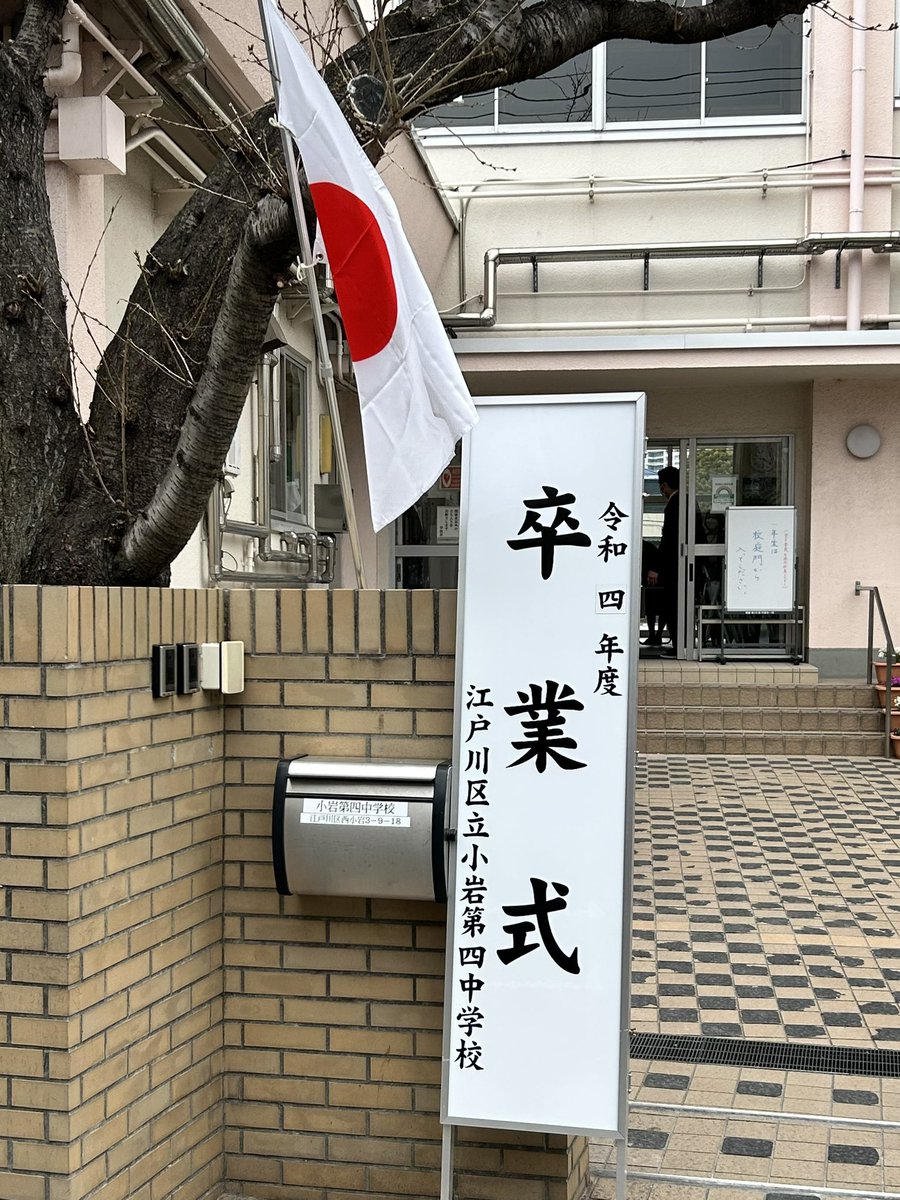 本日は小岩第4中学校で卒業式が挙行され出席させて頂きました。卒業生の皆さんは緊急事態宣言が発令された3年前に入学されました。幾多の困難を乗り越えての卒業です。誠におめでとうございます㊗️自身の夢の実現に向かって頑張って下さい❗️