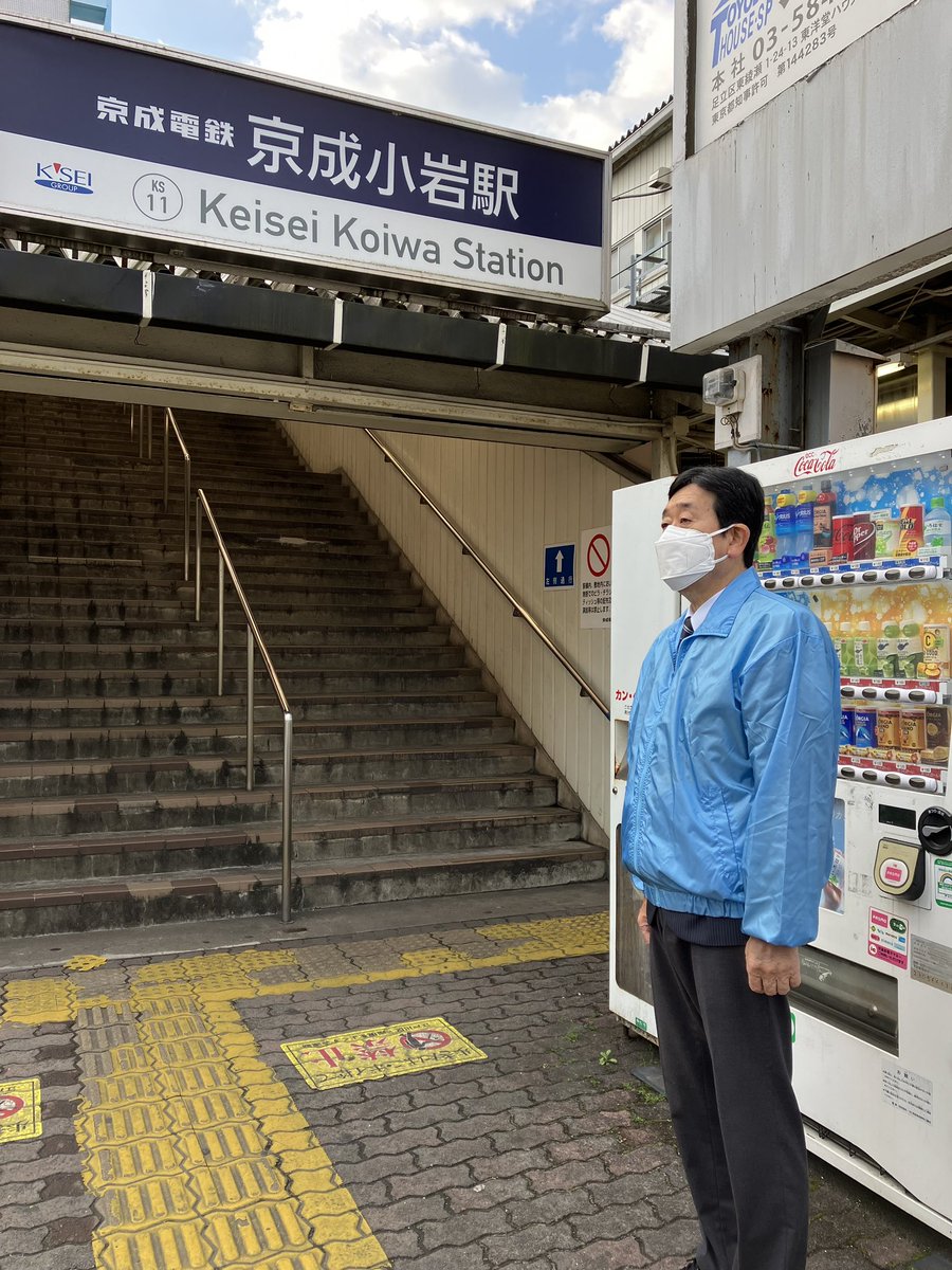 今朝は京成小岩駅北口よりスタートです❗️桜も今週が見頃のピークです🌸新年度に向かって気持ちも新たに、頑張りましょう♪