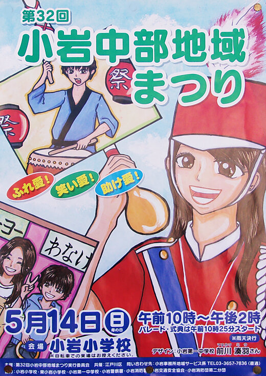 第32回 小岩中部地域まつり ふれ愛!笑い愛!助け愛! 日時:令和5年5月14日(日) 午前10時~午後2時(パレード・式典は午前10時25分スタート)※雨天決行 会場:小岩小学校 主催:第32回小