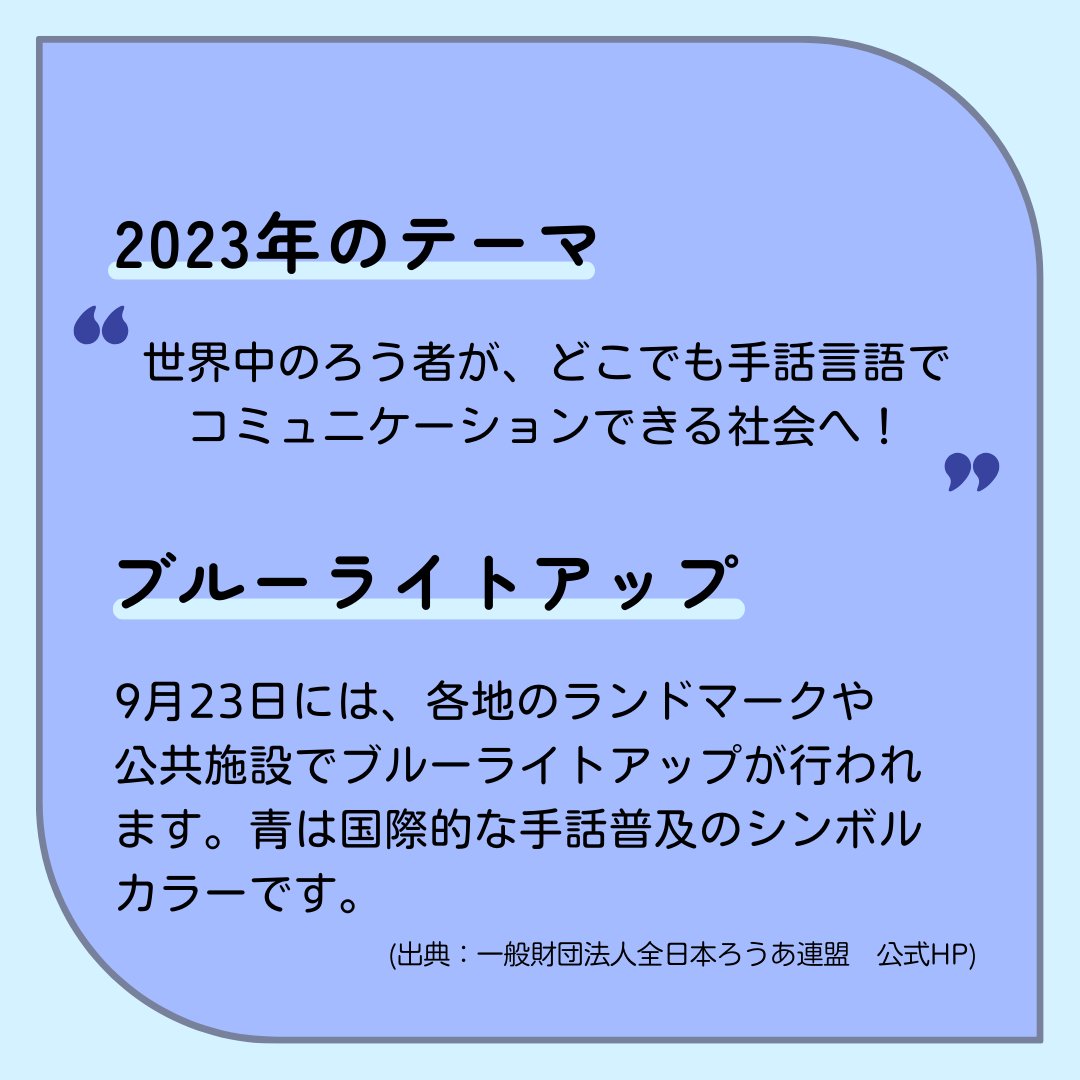 明日9/23は #手話言語の国際デー です。当日は国際ろう者週間とあわせ、手話はひとつの言語であることの認知を高め、ろう者の人権が完全に保障されるよう、様々な啓発活動やイベントが開催されます。