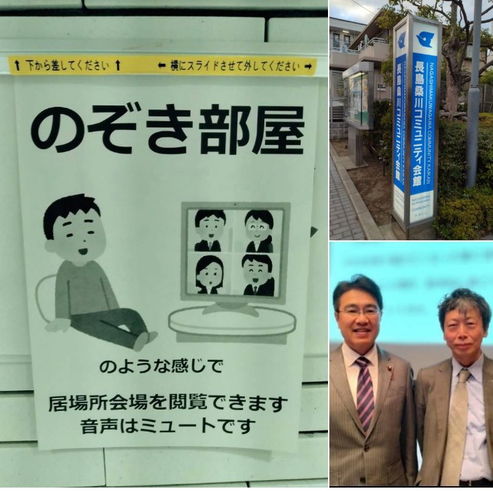 #ひきこもり オンライン居場所 に昨日参加! 都内初の #メタバース を活用したオンライン居場所は、リアル会場でも参加可のハイブリッド型居場所。私はその様子が見られ休める通称·のぞき部屋で参加。イラストは以前のzoom?! #江戸川区 は条例も制定しサポートを推進! 写真は1月に #池上正樹 氏と