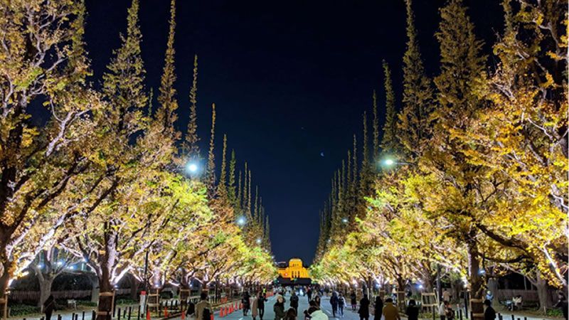 12/3(日)まで、東京・神宮外苑イチョウ並木のライトアップ開催中。色づいたイチョウの木々が夜の闇に浮かび上がります→event-checker.info/jingugaie..