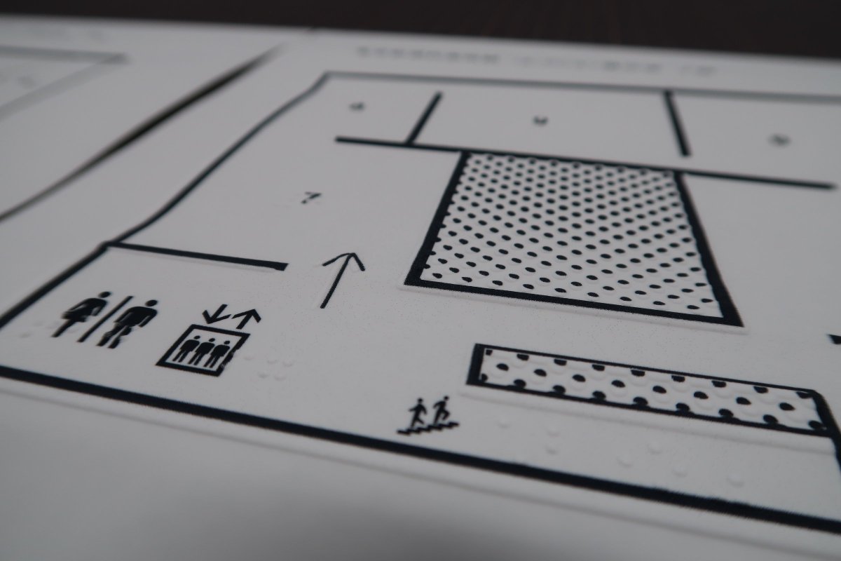 視覚障害のある方にご活用いただけるよう、開催中のコレクション展の触察用フロアマップを作成しました。美術館のインフォメーションにて、閲覧用のマップをご用意しています(無料)。