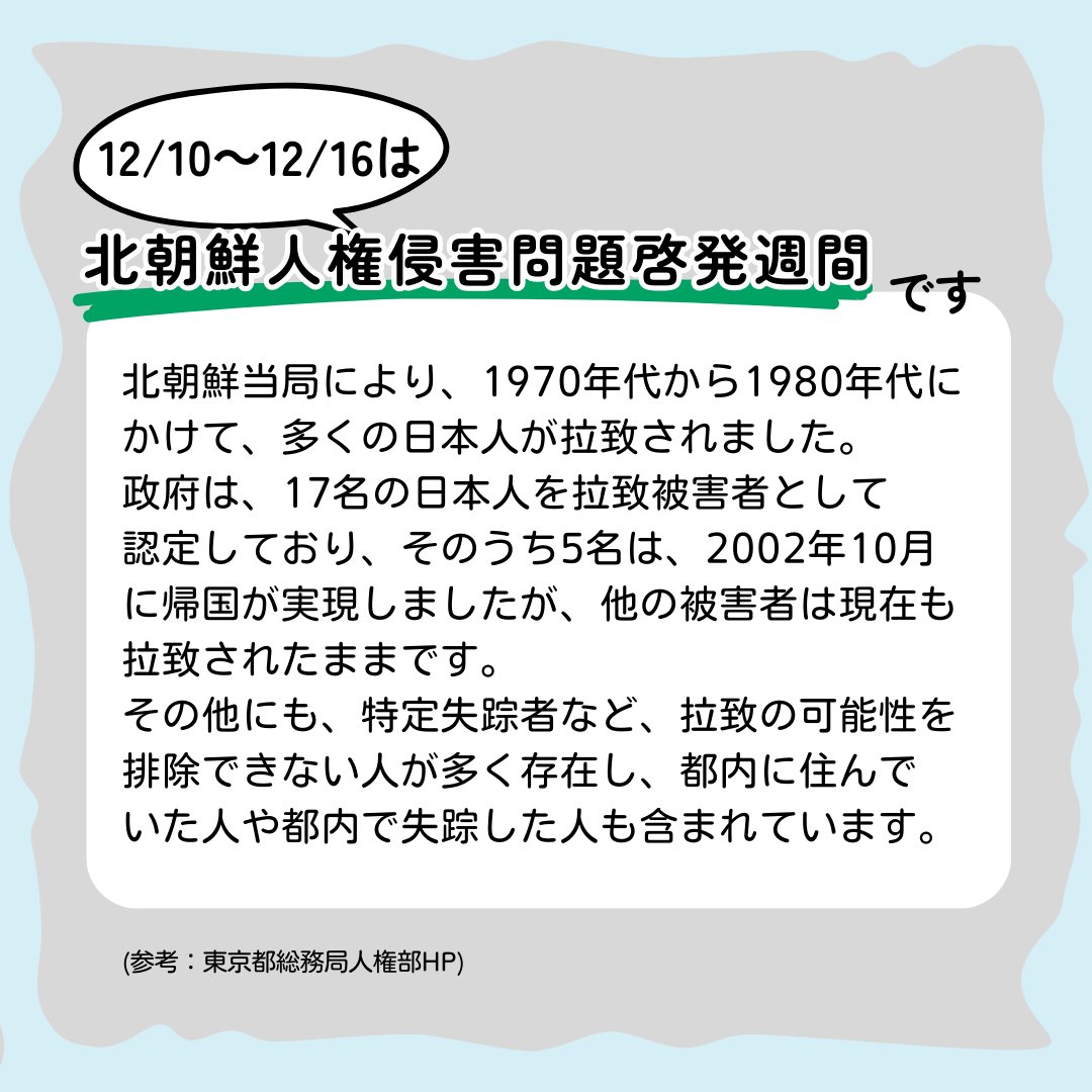 12月10日から12月16日は #北朝鮮人権侵害問題啓発週間 です。