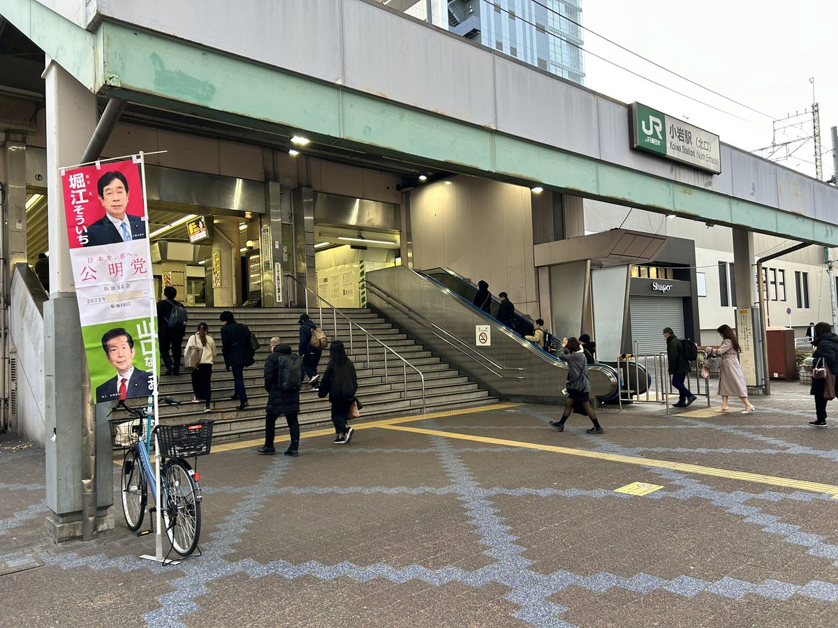 大変に寒い朝になりました🥶JR小岩駅北口よりスタートです。駅前のイチョウも色づきました。今年もあと半月😓体調管理に気をつけて頑張りましょう!