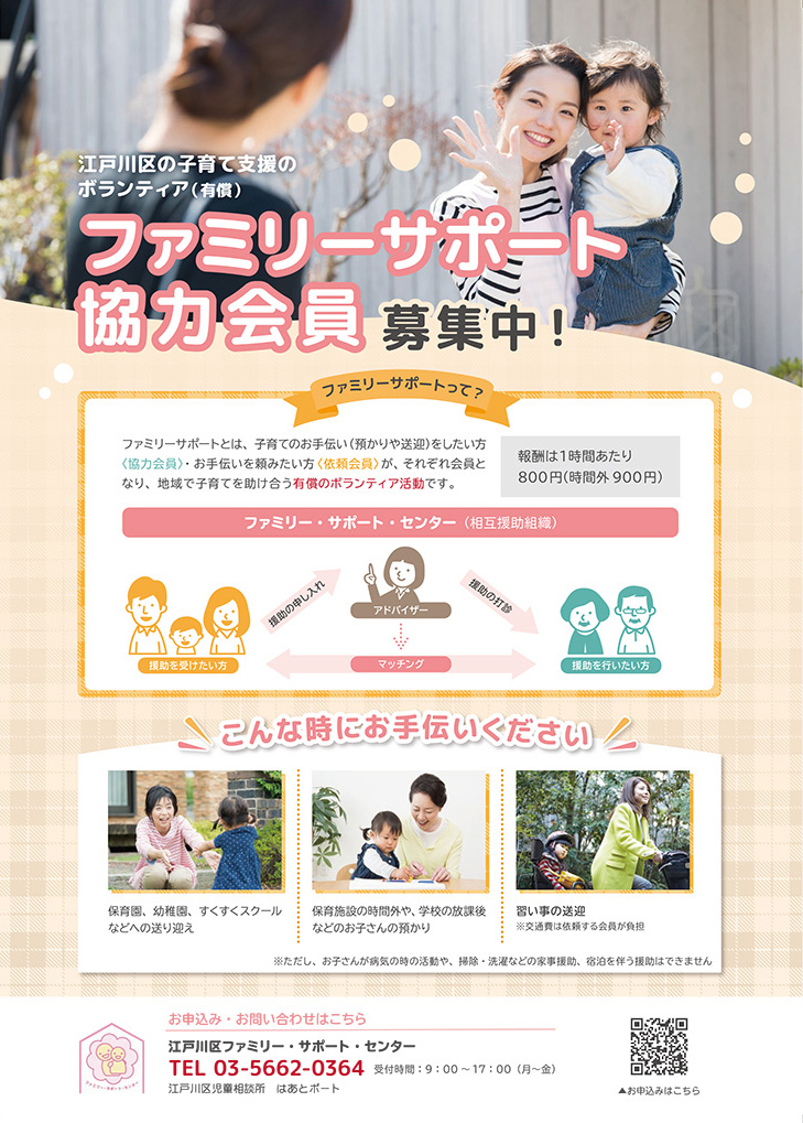 お子さんの預かりや保育園送迎等をお手伝いしていただける方(協力会員)を募集しています。
