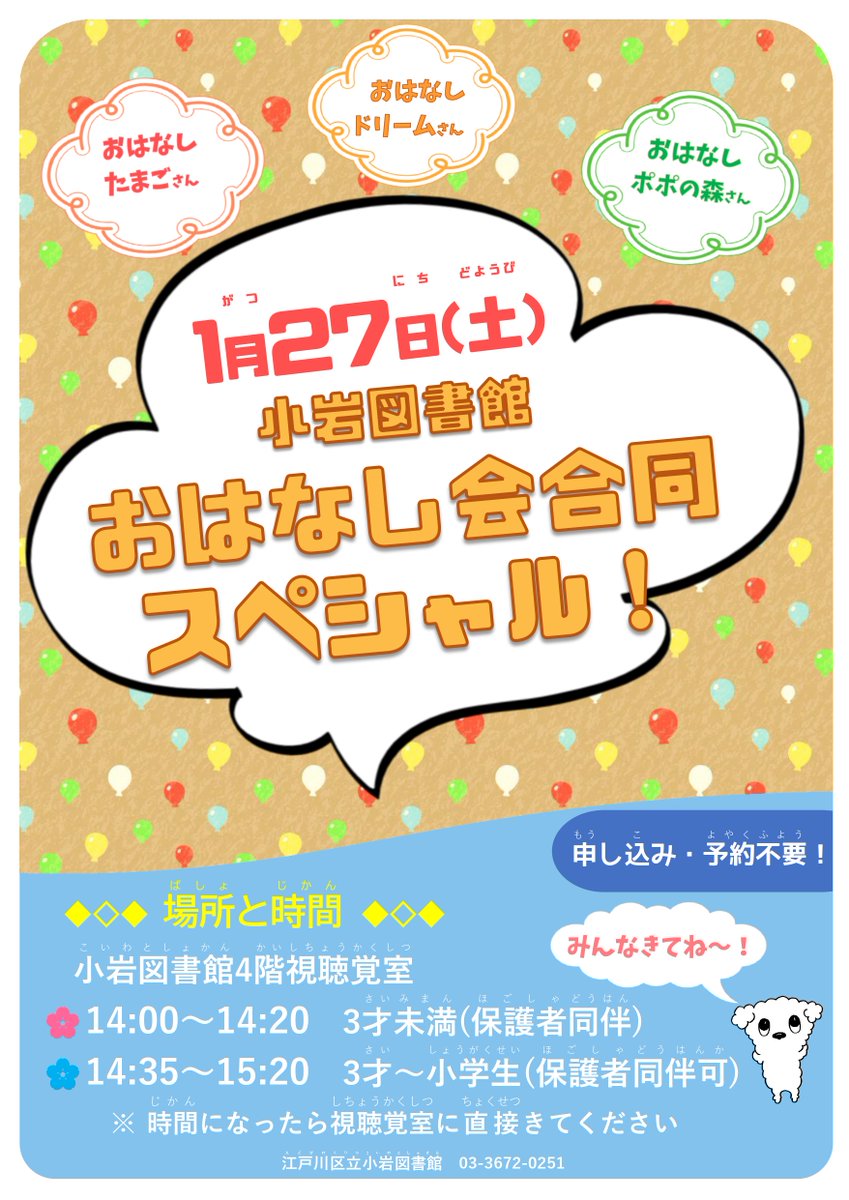 次回27日(土) のおはなし会は3団体合同のスペシャルおはなし会です!事前申込は不要ですので、ぜひご参加ください♪