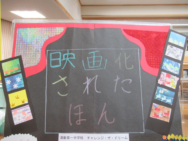 清新第一中学校の生徒さんがチャレンジ・ザ・ドリームに来てくれました! テーマは「映画化されたほん」 話題作がたくさん揃っています。映画のフィルムを思わせる装飾がすてきなポスターを目印に、ぜひチェックしてみてくださいね。 ティーンズコーナーでしばらくの間展示しています♪ #西葛西図書館