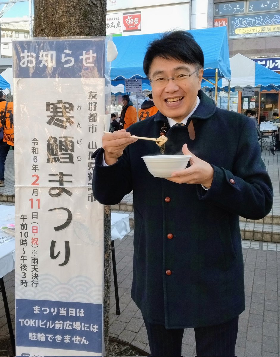 #江戸川区 の友好都市・鶴岡市の名物『どんがら(寒鱈)汁』を初め、庄内の特産品が揃う『#寒鱈まつり』が、船堀駅前のトキビルで昨日開催され訪問。 ユネスコ食文化創造都市である #鶴岡市 は、本当に豊かな食文化が育まれています。 私も #どんがら汁 を頂き、身体も心も温まるヒトトキでした。