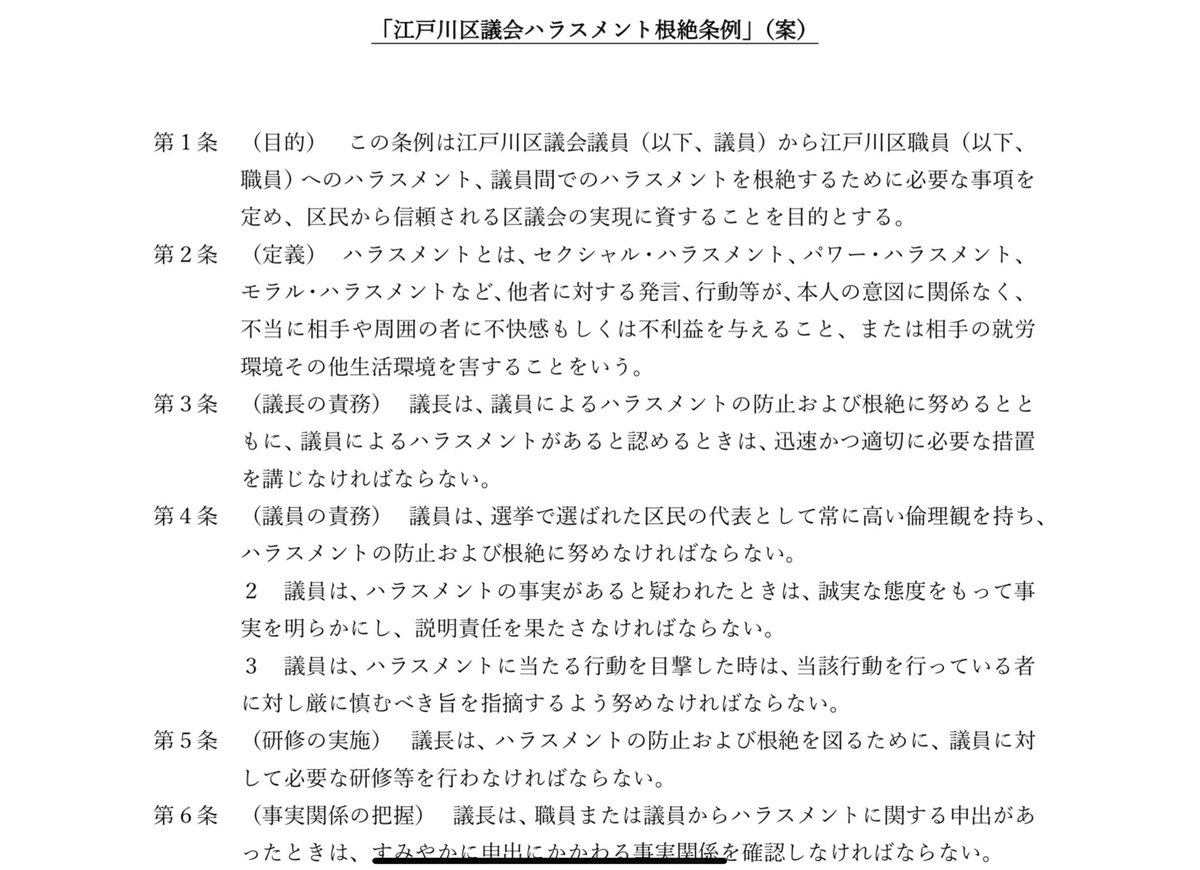 #江戸川区議会 第一回定例会において、我が会派より #ハラスメント根絶条例 案を提案しました。