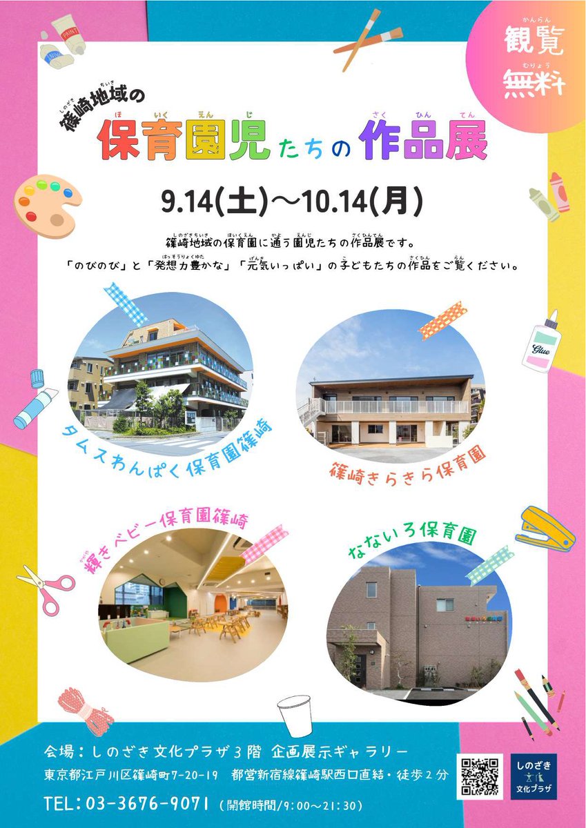 ◆篠崎地域の保育園児たちの作品展を開催しています◆ 「のびのび」と「発想力豊かな」「元気いっぱい」の子どもたちの作品をご覧ください観覧は無料です 開催期間:9月14日(土)~10月14日(月)9:00~21:30 場所:しのざき文化プラザ3階 企画展示ギャラリー https://city.edogawa.tokyo.jp/rdt.php?pid=57728&utm_source=X…
