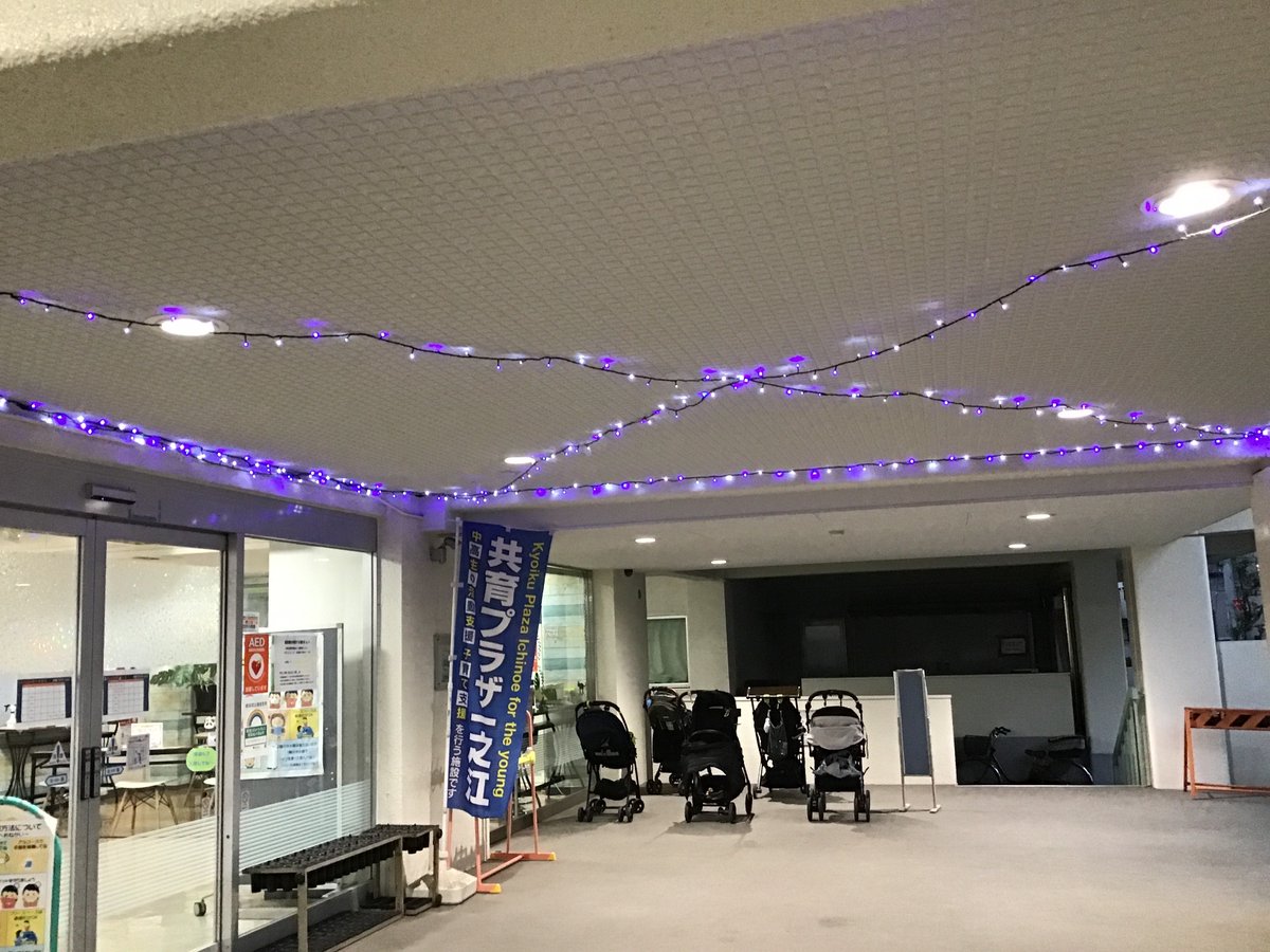 共育プラザ一之江では、玄関にイルミネーション✨を取り付けています。白と青でキレイなので来館したときに見てね😊#江戸川区 #共育プラザ一之江#イルミネーション001