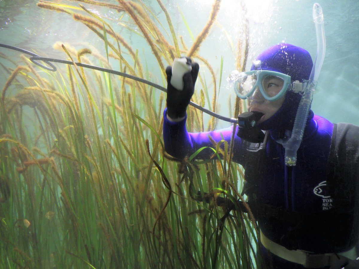こちらは水槽に潜ったスタッフが、アクリルについたコケを掃除中🤿掃除しながら、水槽内の生物に注意することも大切です。#新年は1月2日から開園です#おうちでかさりん014118