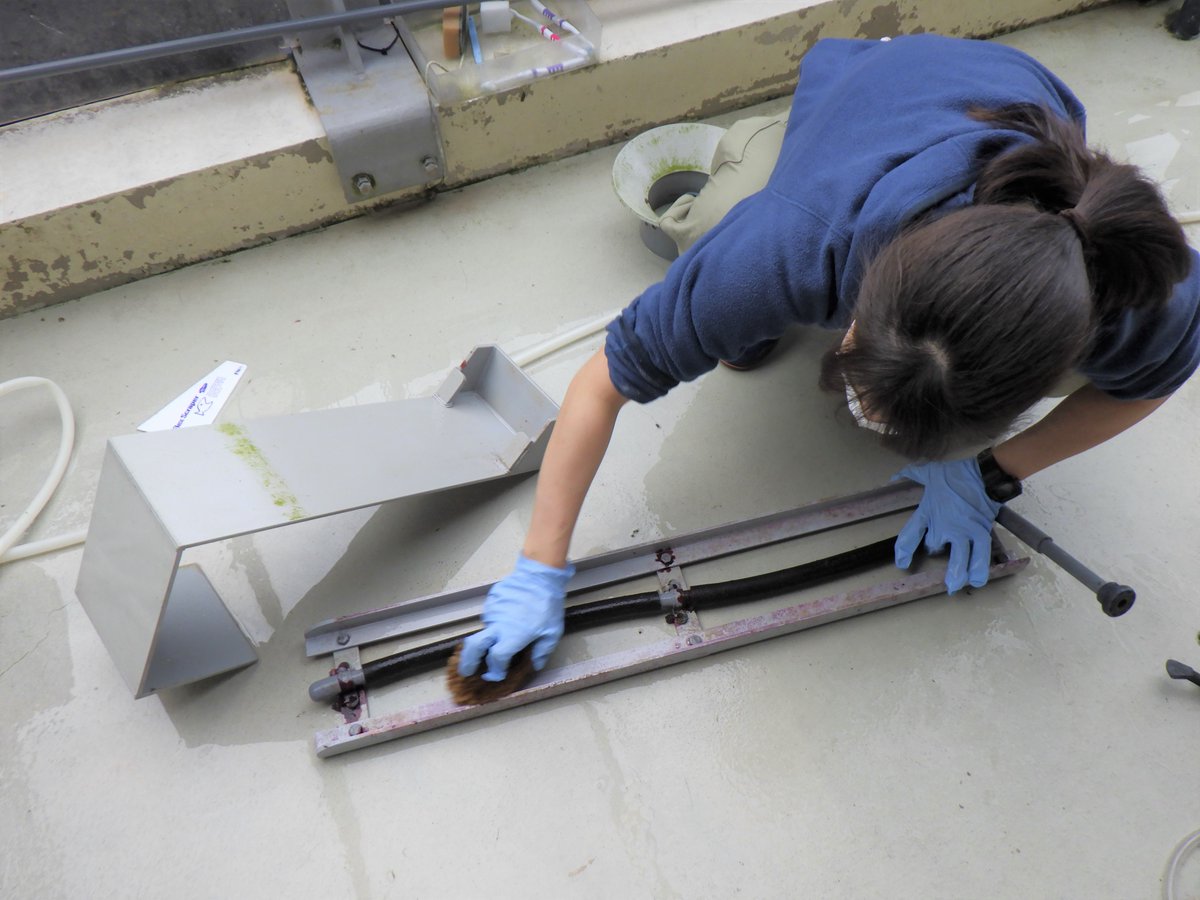 ゴシゴシ…今年の汚れ…きれいになれーッ!!年末年始、水族園は休園中ですが、スタッフは掃除や生き物の世話に大忙しです😀💦#新年は1月2日から開園です#おうちでかさりん0850