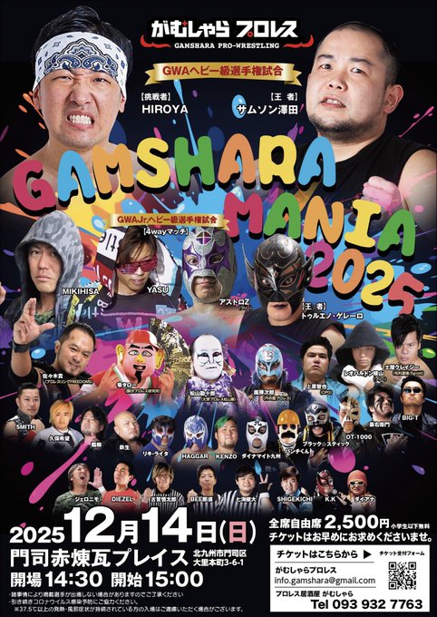 /2025年最後のビッグマッチ!\GAMSHARAMANIA20252025.12.14[日]開場14:30開始15:00門司赤煉瓦プレイスチケットは公式、各選手、スタッフにて受付中!公式予約フォーム..