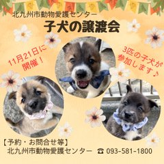 \子犬の譲渡会のお知らせ/皆さま、こんにちは北九州市動物愛護センターです11月21日(木)に子犬の譲渡会を開催します受付:10時00分~10時15分譲渡会:10時15分~11時45分事前予約制ですので..