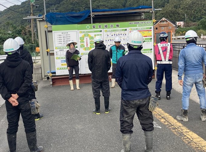 #国道201号#香春拡幅では、4車線化に向けて工事を進めています工事を始める前は全て作業員が集合し、健康状態や作業内容及びその作業に潜む危険などの確認を行います。安全を最優先に工事を進めています。#国..