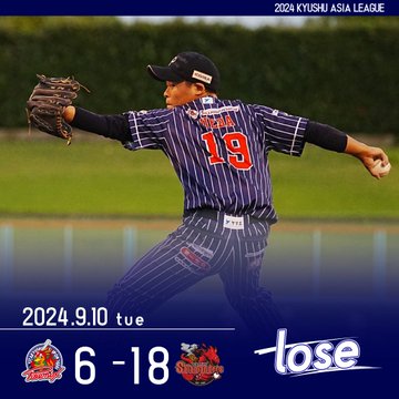 【試合結果】9月10日火の国サラマンダーズとの試合は6対18で敗戦いたしました。【次戦のお知らせ】#大分Bリングス9/14土第1試合11:00〜第2試合第1試合終了45分後開始目安津久見市民球場#北九..