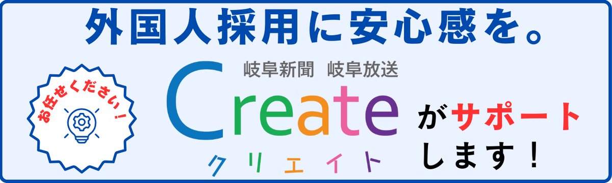 【岐阜新聞岐阜放送クリエイトからお知らせ】#外国人採用に不安のある方、これまで外国人採用を行ったことのない企業のご担当者様、地域密着の岐阜新聞岐阜放送グループの#岐阜新聞岐阜放送クリエイトが全力でサポ..