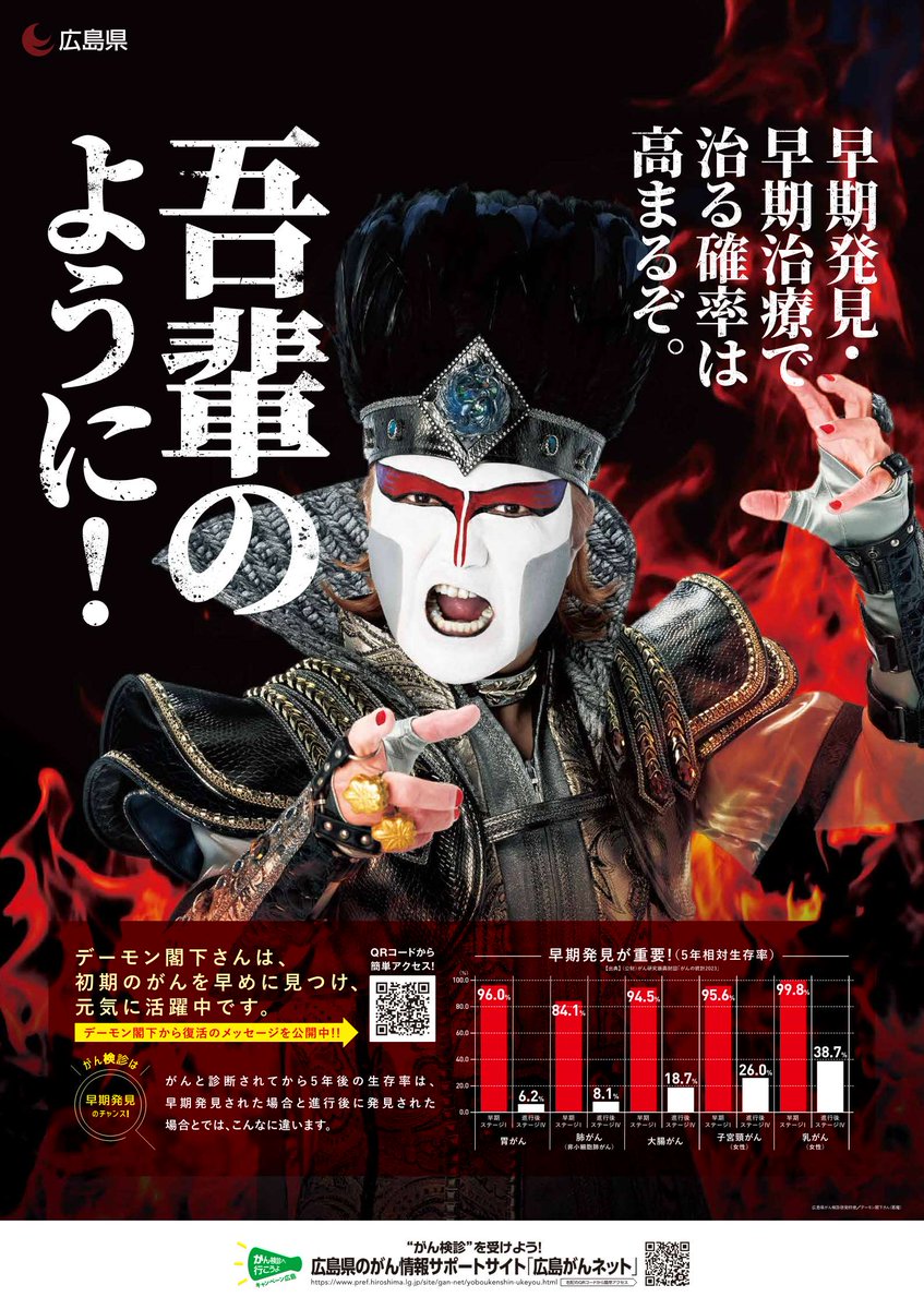 ╋━デーモン閣下さんのように、がんの早期発見・早期治療を━╋がんは初期のうちは自覚症状がほとんどありません。まずは定期的に検診を受けましょう。https://pref.hiroshima.lg.jp/..