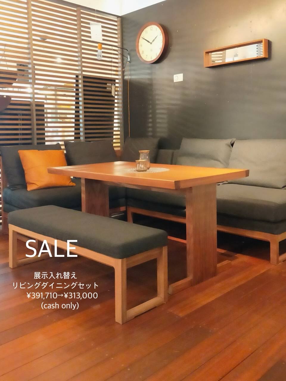 ーSALE品のお知らせー展示入れ替えのため、特別価格品です。リビングダイニングセットダイニングテーブルカウチソファ肘なしソファベンチ¥391,710→¥313,000(お支払いは現金払いかお振込で..