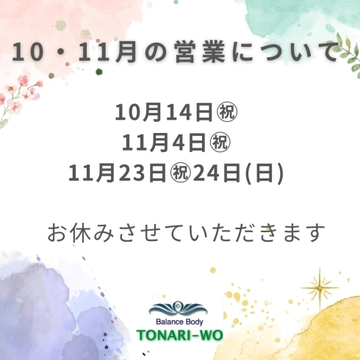 白石区南郷通のプライベートスタジオ#バランスボディトナリヲさんの新着投稿です。11月4・23日お休みとさせていただきます。#札幌Twitter会https://sapporo.mypl.net/shi..