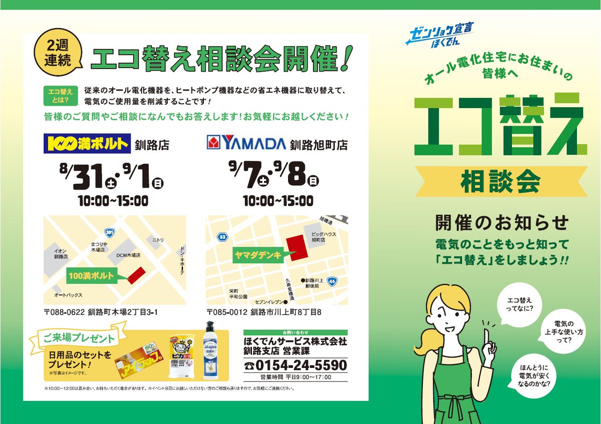 【釧路市でオール電化住宅にお住まいのお客さまへ】9月7日(土)・9月8日(日)に、#ヤマダデンキテックランド釧路旭町店にてエコ替え相談会を開催!給湯・暖房を省エネ機器に取り替える『エコ替え』について、..
