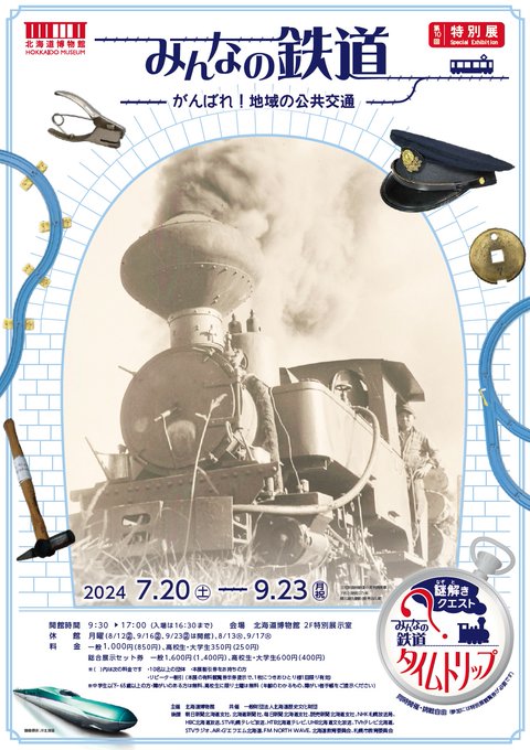 /みんなの鉄道―がんばれ!地域の公共交通―\9/23(月・祝)まで#北海道博物館で、鉄道をはじめとする公共交通の歩みをたどる企画展を開催中本日(8/30)から9/1には、博物館近くの百年記念広場でキッ..