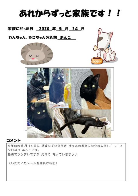 2020年5月14日譲渡のあんこちゃんより「あれからずっと家族です」が届きました。ありがとうございます!過去に提出されたものは下記リンクから↓https://city.sapporo.jp/inune..