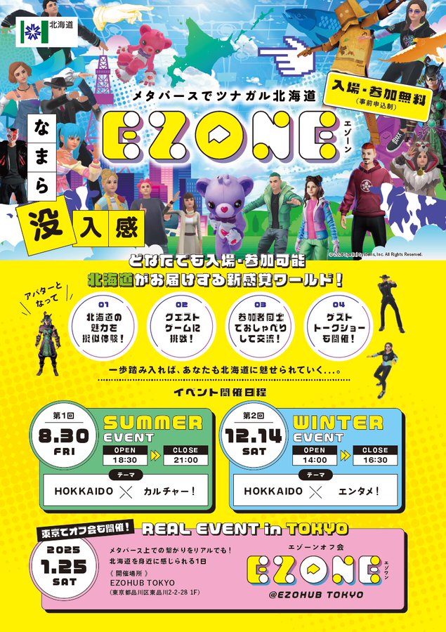 /#メタバースでツナガル北海道EZONE(エゾーン)\バーチャル空間でアバターとなって北海道の自然や文化クエストゲームおしゃべりトークショーなどを体験できるイベントを8/30(金)に開催なまら没入感を..