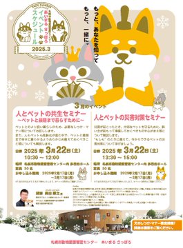 【イベント】3月22日(土)、「人とペットの共生セミナー~ペットと最期まで暮らすために~」を開催します!ペットとのより良い暮らしのため、必要な飼い主の心がまえ等について解説しますので、ぜひご参加くださ..