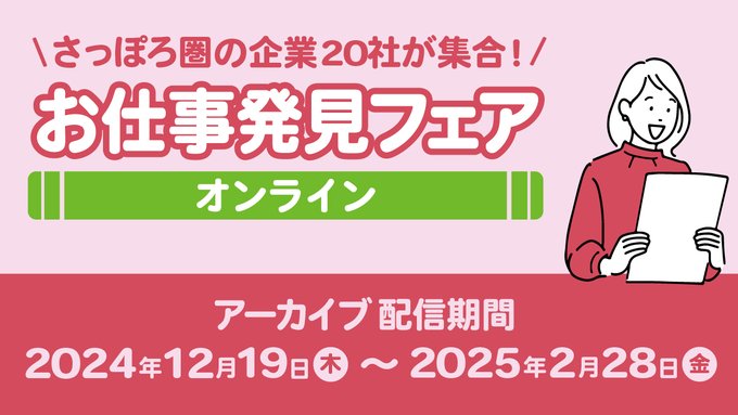 配信終了まであと少しさっぽろ圏企業の会社説明会動画が見れるアーカイブ配信は今月まで!いつでもどこでも視聴できるので忙しい就活生の皆さんにオススメです▼動画はこちら(登録不要)https://event..