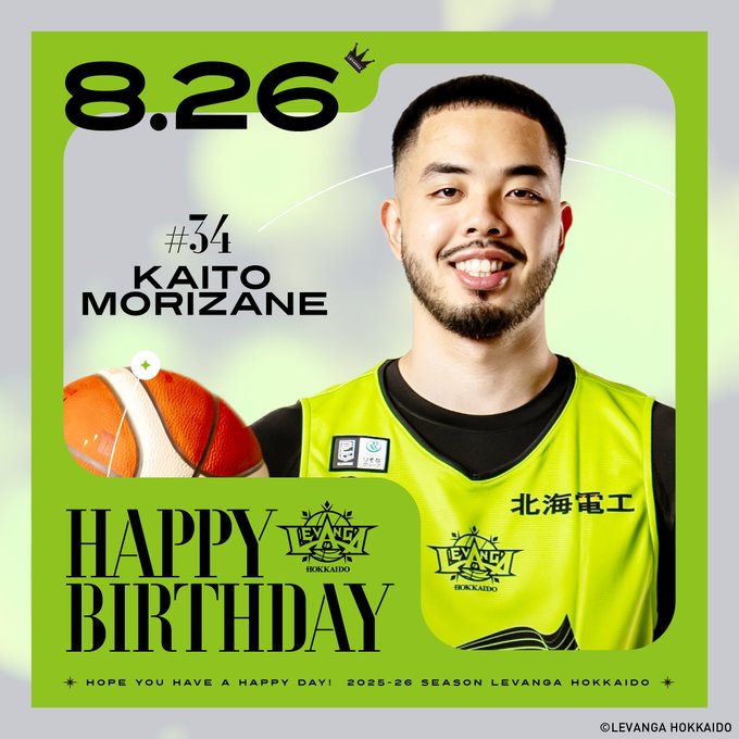 HAPPYBIRTHDAYKAITO!!本日8/26は、盛實海翔選手のお誕生日素敵な一年になりますようにおめでとうございます1997年8月26日生まれ#Bリーグ#レバンガ北海道#盛實海翔@Moriza..